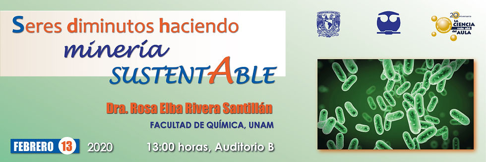 Para abrir el ciclo en el 2020-2 tenemos como invitada a la Dra. Rosa Elva Rivera Santillán adscrita al departamento de ingeniería metalúrgica de la Facultad de Química UNAM y quien es lider en biotecnología mineral con especialidad en biolixiviación minera.